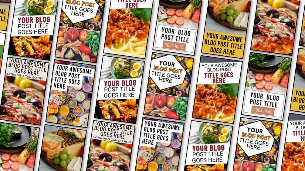 50 Fully customizable Pinterest pin Canva templates. Tested with food bloggers in mind, but perfect for any blogger or content creator!